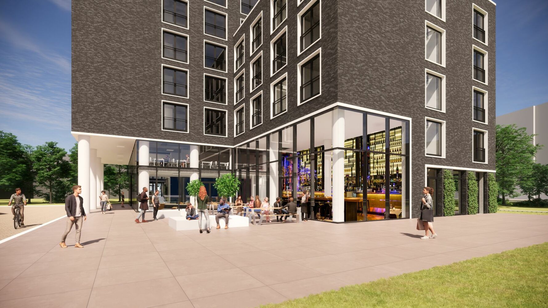 De omgeving is ook fijn om te wonen: veel groen, want het Kolffpad valt binnen de parkachtige herontwikkeling van het Leiden Bio Science Park. Dat brengt, ook voor het studentencomplex, natuurinclusieve bouw met zich mee. Toepassingen voor klimaatadaptatie en biodiversiteit zijn dadelijk ruimschoots terug te vinden in de nieuwbouw: die krijgt onder meer een groen sedum dak en een groene gevel met insectenhotels en nestkasten. Door aansluiting op de stadsverwarming wordt het complex gasvrij. Zonnepanelen zorgen voor de stroom voor elektrisch koken.