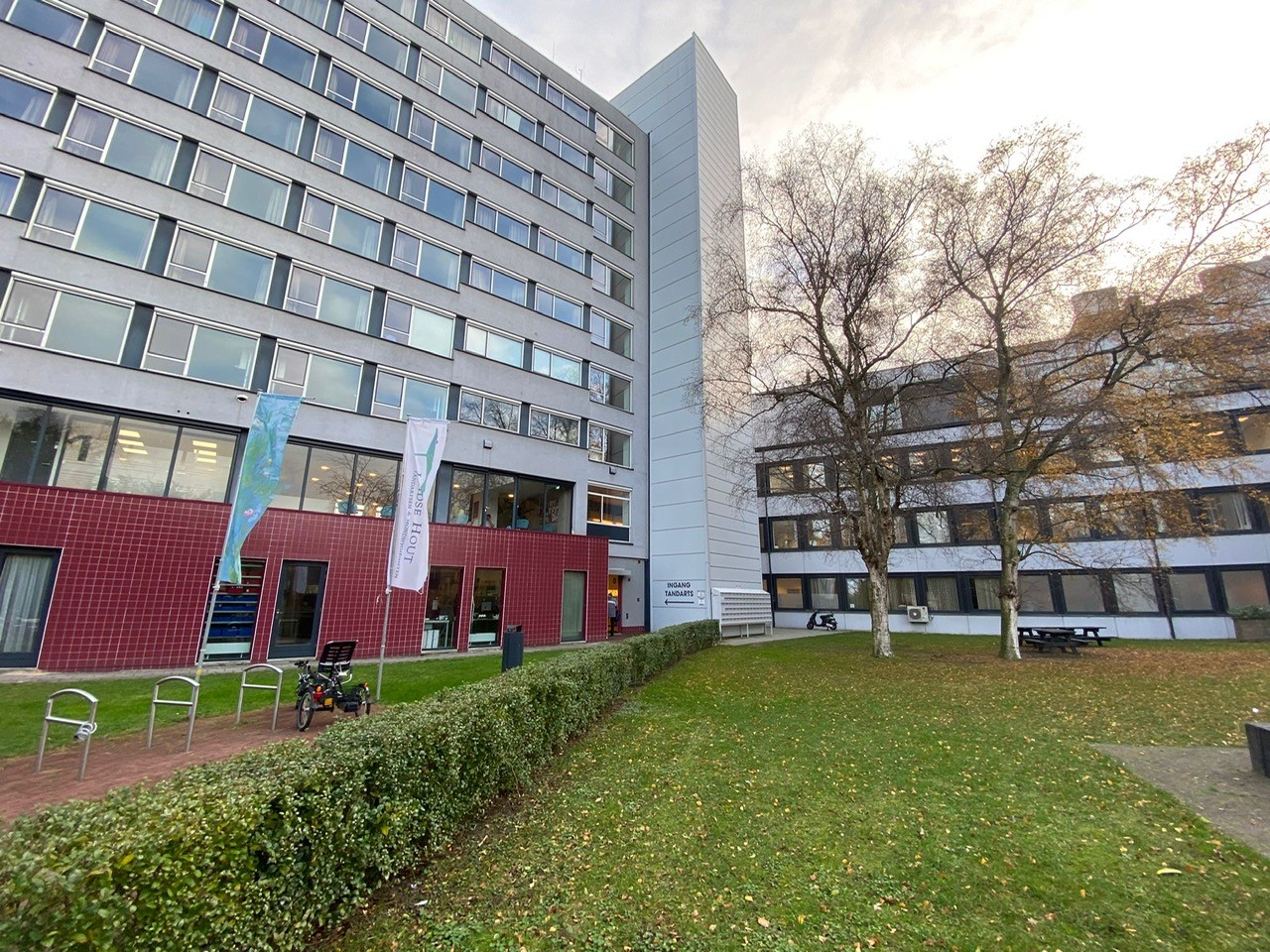 In het gebouw aan de Houtlaan zijn 22 kamers met gedeelde voorzieningen en 83 studio’s gerealiseerd. De locatie ligt direct naast het ziekenhuis van Alrijne, in een rustige wijk net buiten het centrum van Leiden. Bewoners hebben alle voorzieningen binnen handbereik, van het ziekenhuis en de poliklinieken tot het restaurant en de openbaarvervoerhaltes voor de deur.